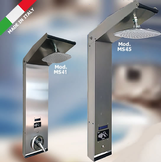 Sistema modulare di docce a scheda bracciale o portachiave RFID MIFARE dal design moderno e gradevole che unisce all’aspetto estetico il rispetto dei criteri di economia e praticità rendendolo ideale per palestre, piscine, centri sportivi, impianti balneari, villaggi, campeggi e strutture ricettive. Con e senza credito a scalare, controllo del tempo di erogazione, controllo del tempo di pausa, programmazione personalizzata e display intuitivo e dettagliato. Richiedi una demo o una consulenza